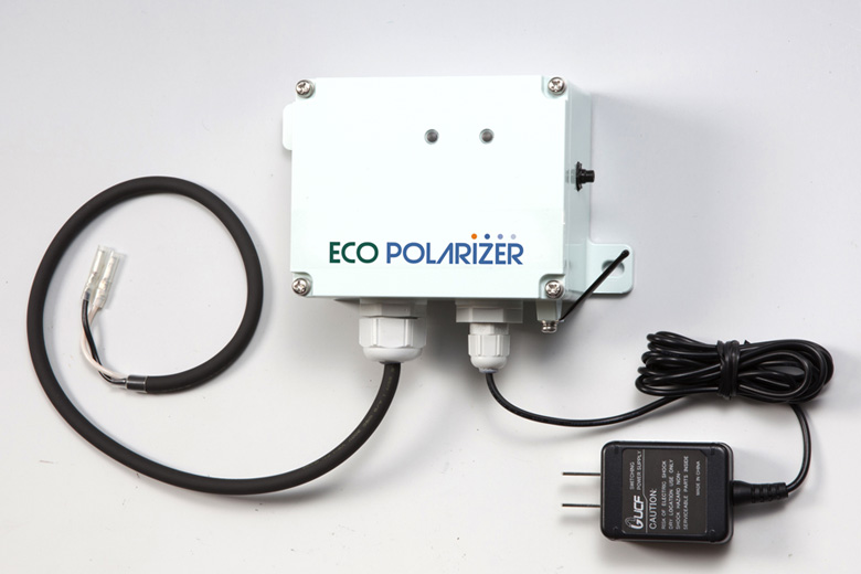 Eco Polarizer foi desenvolvido a partir da Tecnologia de Controle Livre de Partículas na Água, controlando a emissão de ondas eletromagnéticas com frequências específicas através de IC Chips, induzido por dispositivos instalados na tubulação hidráulica (tecnologia e patente japonesa).